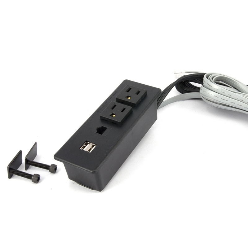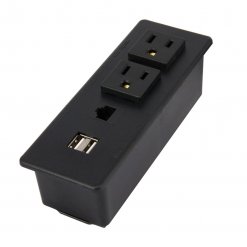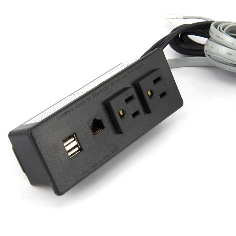 Office furniture recessed mounting 2 AC outlets socket with dual usb charger and RJ45 port