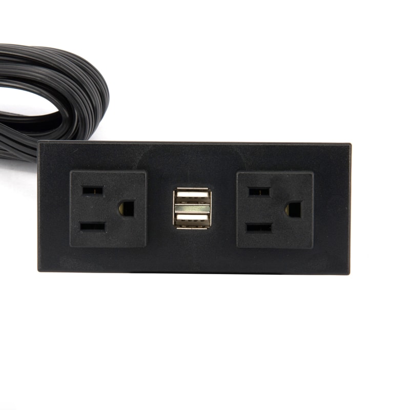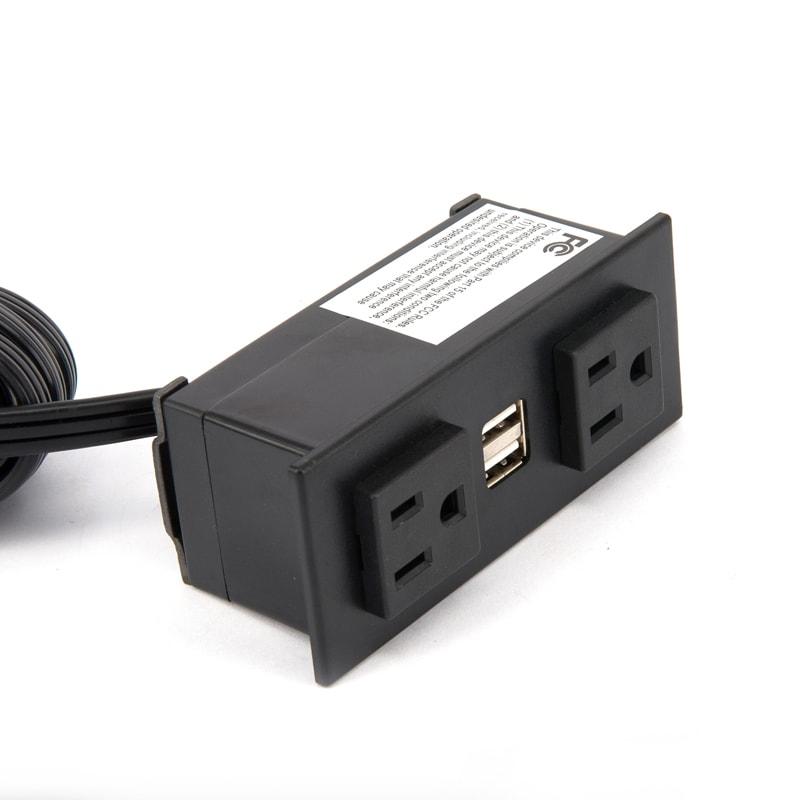 USA power 125V furniture tabletop two outlet socket recessed mounting power strip